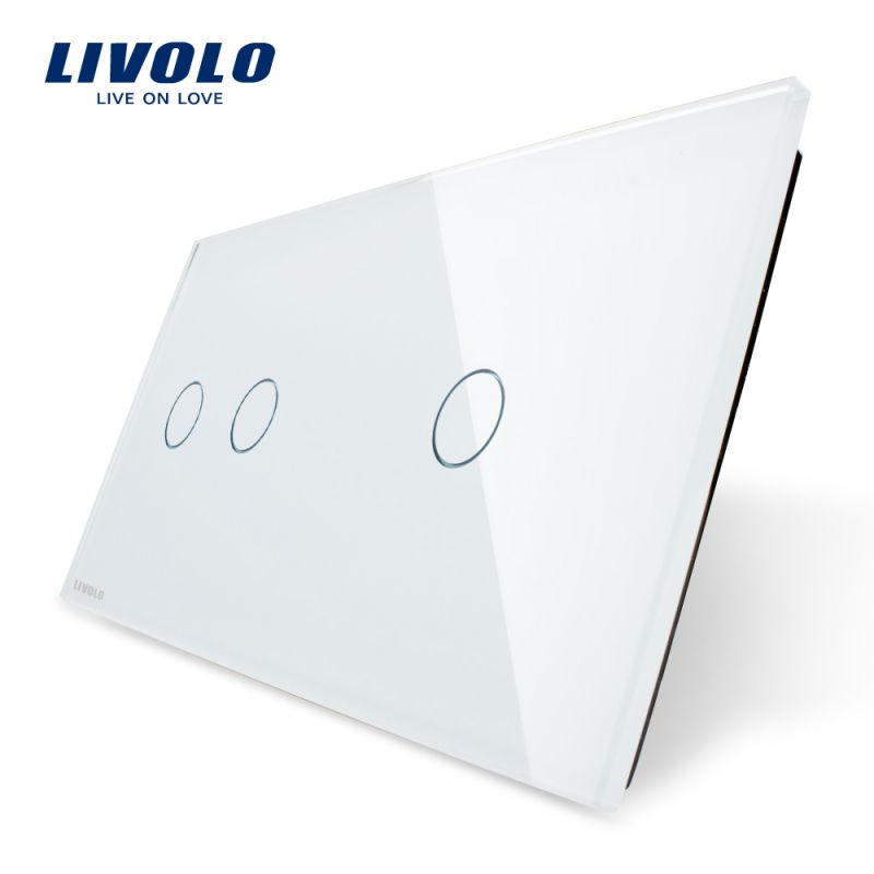 LIVOLO Panou intrerupator dublu + simplu cu touch Livolo din sticla