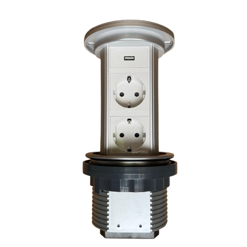 LIVOLO Priza incastrabila Pop Up, Silver, echipata cu USB, incarcator Wireless + 2 prize 2M